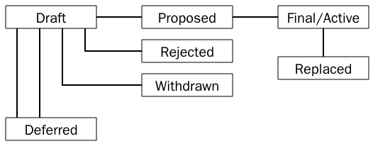 The Layer header (only for Standards Track BIPs) documents which layer of Bitcoin the BIP applies to. See [[bip-0123.mediawiki|BIP 123]] for definitions of the various BIP layers. Activation of this BIP implies activation of BIP 123. The Author header lists the names and email addresses of all the authors/owners of the BIP. The format of the Author header value must be Random J. User If there are multiple authors, each should be on a separate line following RFC 2822 continuation line conventions. While a BIP is in private discussions (usually during the initial Draft phase), a Discussions-To header will indicate the mailing list or URL where the BIP is being discussed. No Discussions-To header is necessary if the BIP is being discussed privately with the author, or on the bitcoin email mailing lists. The Type header specifies the type of BIP: Standards Track, Informational, or Process. The Created header records the date that the BIP was assigned a number, while Post-History is used to record when new versions of the BIP are posted to bitcoin mailing lists. Dates should be in yyyy-mm-dd format, e.g. 2001-08-14. Post-History is permitted to be a link to a specific thread in a mailing list archive. BIPs may have a Requires header, indicating the BIP numbers that this BIP depends on. BIPs may also have a Superseded-By header indicating that a BIP has been rendered obsolete by a later document; the value is the number of the BIP that replaces the current document. The newer BIP must have a Replaces header containing the number of the BIP that it rendered obsolete. ====Auxiliary Files==== BIPs may include auxiliary files such as diagrams. Auxiliary files should be included in a subdirectory for that BIP, or must be named BIP-XXXX-Y.ext, where "XXXX" is the BIP number, "Y" is a serial number (starting at 1), and "ext" is replaced by the actual file extension (e.g. "png"). ==BIP types== There are three kinds of BIP: * A Standards Track BIP describes any change that affects most or all Bitcoin implementations, such as a change to the network protocol, a change in block or transaction validity rules, or any change or addition that affects the interoperability of applications using Bitcoin. Standards Track BIPs consist of two parts, a design document and a reference implementation. * An Informational BIP describes a Bitcoin design issue, or provides general guidelines or information to the Bitcoin community, but does not propose a new feature. Informational BIPs do not necessarily represent a Bitcoin community consensus or recommendation, so users and implementors are free to ignore Informational BIPs or follow their advice. * A Process BIP describes a process surrounding Bitcoin, or proposes a change to (or an event in) a process. Process BIPs are like Standards Track BIPs but apply to areas other than the Bitcoin protocol itself. They may propose an implementation, but not to Bitcoin's codebase; they often require community consensus; unlike Informational BIPs, they are more than recommendations, and users are typically not free to ignore them. Examples include procedures, guidelines, changes to the decision-making process, and changes to the tools or environment used in Bitcoin development. Any meta-BIP is also considered a Process BIP. ==BIP status field== ===Specification=== The typical paths of the status of BIPs are as follows: Champions of a BIP may decide on their own to change the status between Draft, Deferred, or Withdrawn. The BIP editor may also change the status to Deferred when no progress is being made on the BIP. A BIP may only change status from Draft (or Rejected) to Proposed, when the author deems it is complete, has a working implementation (where applicable), and has community plans to progress it to the Final status. BIPs should be changed from Draft or Proposed status, to Rejected status, upon request by any person, if they have not made progress in three years. Such a BIP may be changed to Draft status if the champion provides revisions that meaningfully address public criticism of the proposal, or to Proposed status if it meets the criteria required as described in the previous paragraph. An Proposed BIP may progress to Final only when specific criteria reflecting real-world adoption has occurred. This is different for each BIP depending on the nature of its proposed changes, which will be expanded on below. Evaluation of this status change should be objectively verifiable, and/or be discussed on the development mailing list. When a Final BIP is no longer relevant, its status may be changed to Replaced or Obsolete (which is equivalent to Replaced). This change must also be objectively verifiable and/or discussed. A process BIP may change status from Draft to Active when it achieves rough consensus on the mailing list. Such a proposal is said to have rough consensus if it has been open to discussion on the development mailing list for at least one month, and no person maintains any unaddressed substantiated objections to it. Addressed or obstructive objections may be ignored/overruled by general agreement that they have been sufficiently addressed, but clear reasoning must be given in such circumstances. ====Progression to Final status==== A soft-fork BIP strictly requires a clear miner majority expressed by blockchain voting (eg, using BIP 9). In addition, if the economy seems willing to make a "no confidence" hard-fork (such as a change in proof-of-work algorithm), the soft-fork does not become Final for as long as such a hard-fork might have majority support, or at most three months. Soft-fork BIPs may also set additional requirements for their adoption. Because of the possibility of changes to miner dynamics, especially in light of delegated voting (mining pools), it is highly recommended that a supermajority vote around 95% be required by the BIP itself, unless rationale is given for a lower threshold. A hard-fork BIP requires adoption from the entire Bitcoin economy